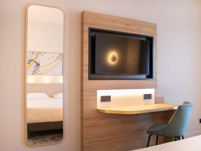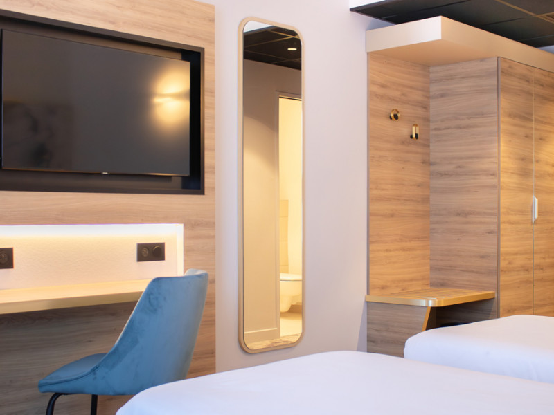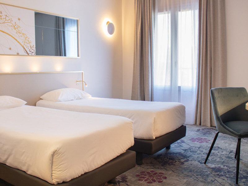 El Brit Hotel Cahors Centre Le Valentre ofrece 88 habitaciones confortables con aire acondicionado, todas equipadas con baño privado con ducha a ras de suelo, WC y secador de pelo, TV LCD con canales deportivos Canal+, BeIN Sports y otros canales por cable y vía satélite, minibar y conexión Wi-Fi gratuita.