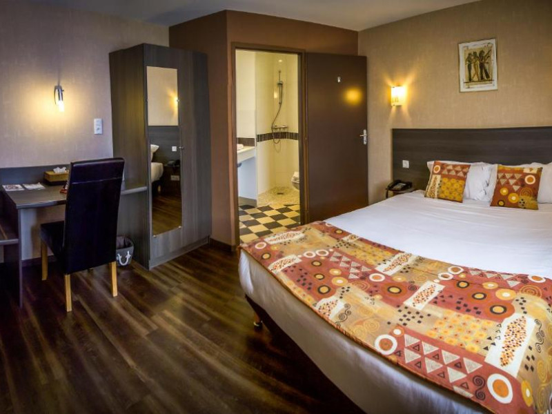 El Brit Hotel Confort Azur Cholet Nord cuenta con 29 habitaciones modernas, distribuidas en 5 edificios de una sola planta. El establecimiento ofrece varios tipos de alojamiento: habitaciones dobles, con dos camas individuales, 6 habitaciones comunicadas ideales para estancias en familia, así como 2 habitaciones adaptadas para personas con movilidad reducida. Todas las habitaciones están equipadas con baño privado con ducha a ras de suelo, secador de pelo y aseo, conexión Wi-Fi gratuita, televisor de pantalla plana con Canal+ Sport 360 y beIN Sports, y teléfono.