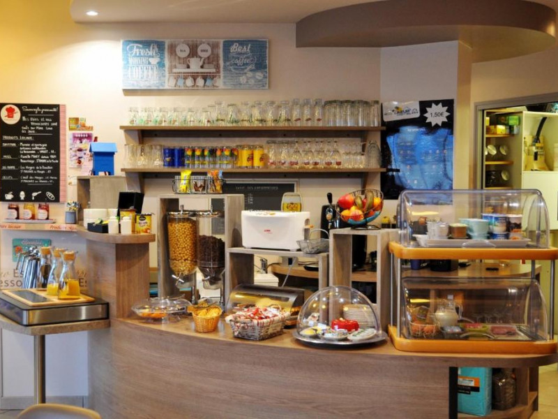 Se sirve un desayuno bufé compuesto por productos frescos y sabrosos en la sala de desayunos de 6:45 a 10:00: pan, croissants, brioche, krisprolls, bizcocho de frutas, magdalenas, cereales, compotas, yogures naturales y de frutas, frutos secos, queso, jamón cocido, huevos duros, fruta, miel, mermelada, Nutella, mantequilla y bebidas calientes. El desayuno no está incluido en el precio de la habitación: 9 euros por persona.