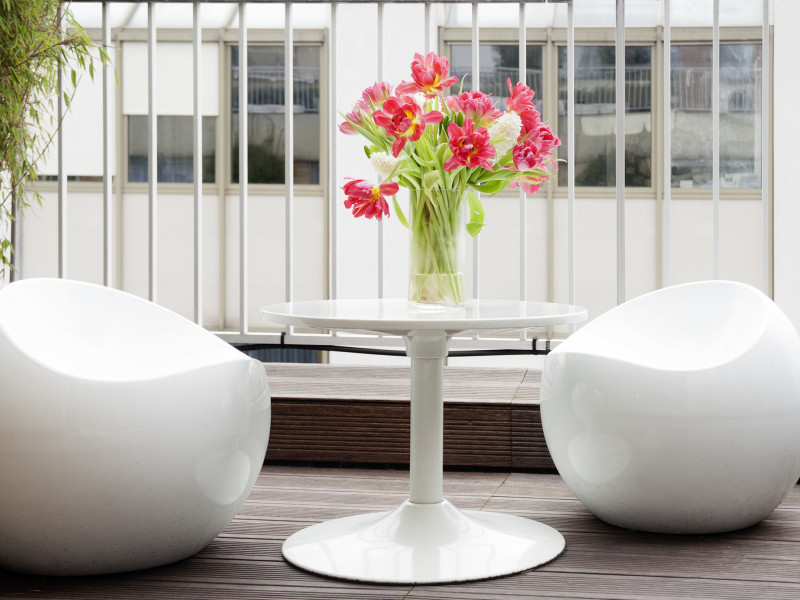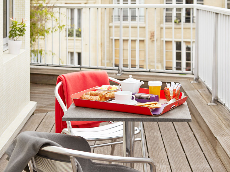- Habitación superior con balcón: 16 m² - cama doble - balcón privado - cafetera Nespresso - nevera - caja fuerte para ordenador portátil.