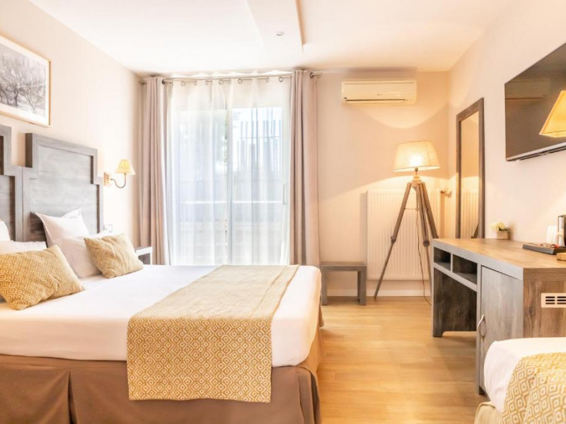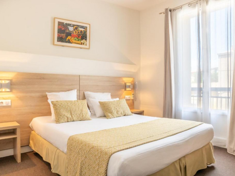 Las habitaciones del hotel Le Concorde en Aix-en-Provence son cómodas, disponen de aire acondicionado y están bien equipadas. Dan a la calle o al patio interior y algunas disponen de balcón. Estas funcionales habitaciones disponen todas ellas de cuarto de baño con ducha o bañera, WC y secador de pelo. También cuentan con televisión de pantalla plana con Canal+ y Euronews, caja fuerte, teléfono, minibar, bandeja de cortesía y folleto de bienvenida. Algunas habitaciones están comunicadas y pueden alojar a 4 personas, lo que las hace ideales para familias. Hay 2 habitaciones adaptadas para personas con movilidad reducida disponibles bajo petición.