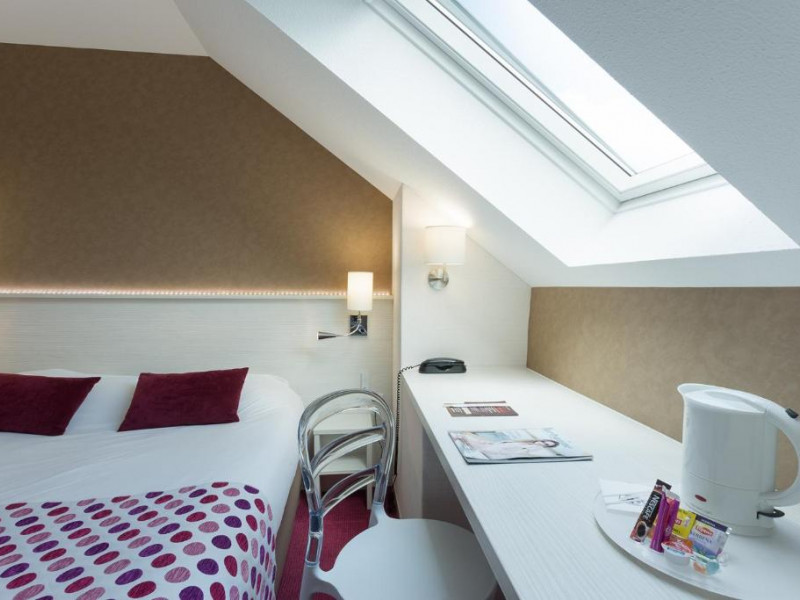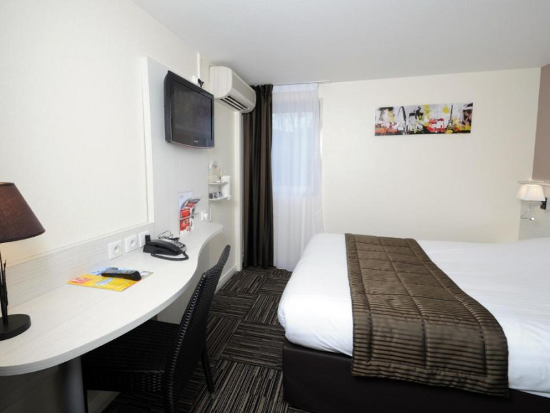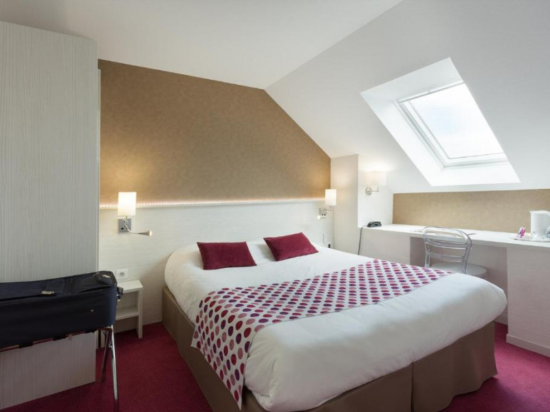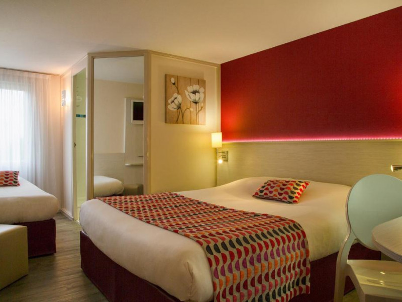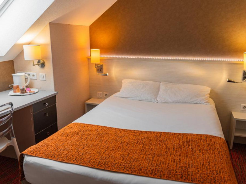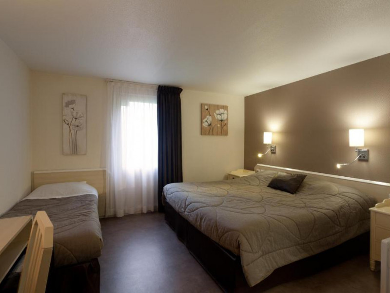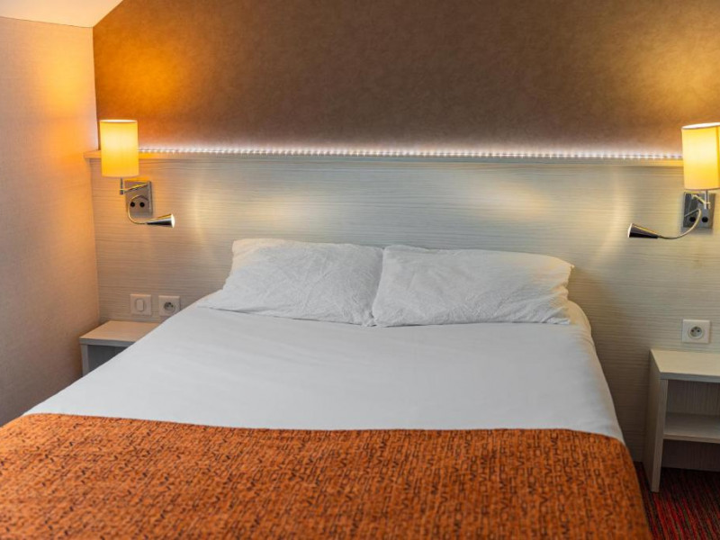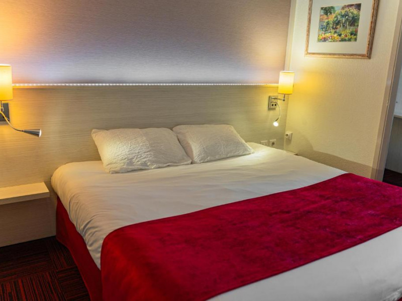 Las 50 habitaciones, recientemente renovadas, le ofrecen un gran confort en un ambiente moderno y relajante. En ellas encontrará todas las comodidades y el equipamiento necesarios para su bienestar: camas de calidad, cuarto de baño con ducha o bañera, secador de pelo, televisión, escritorio, hervidor con café y té, y acceso Wi-Fi. Algunas habitaciones disponen de aire acondicionado.