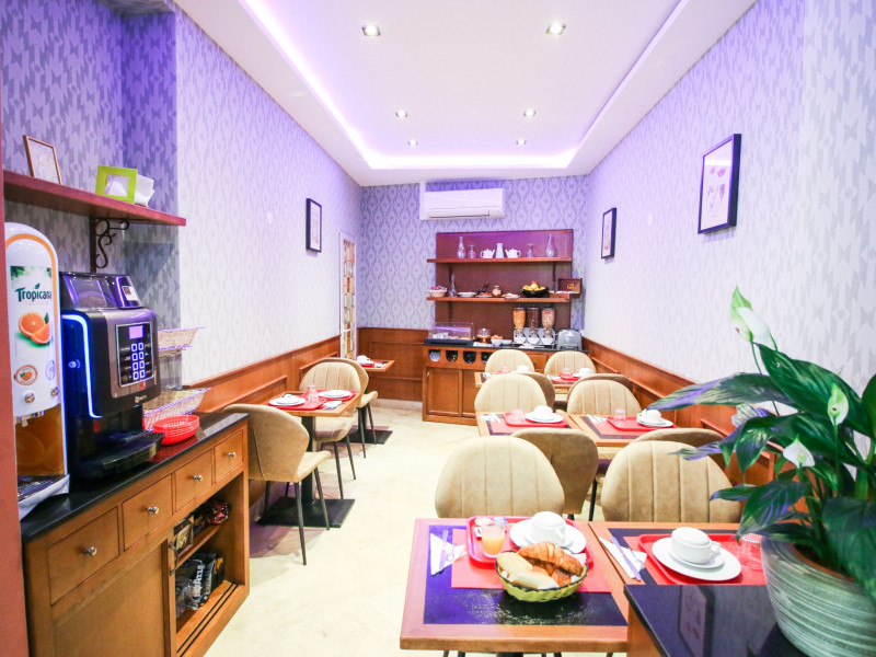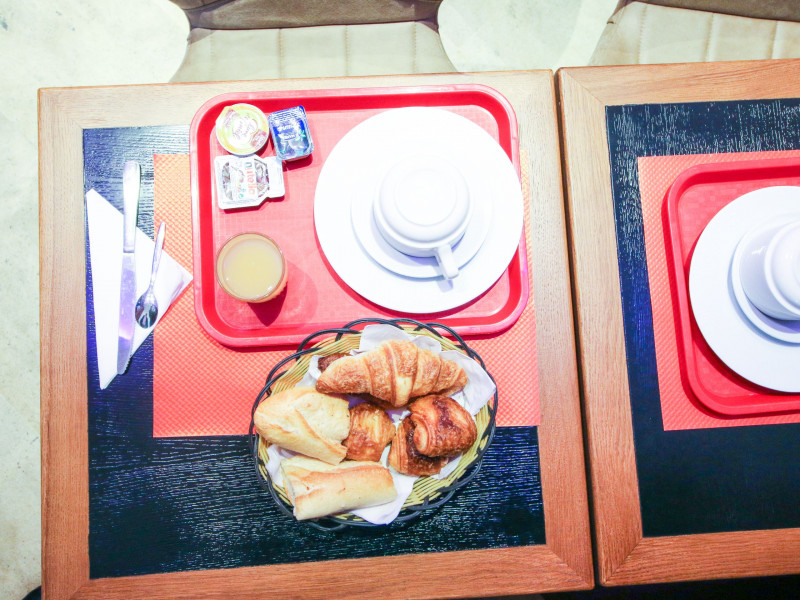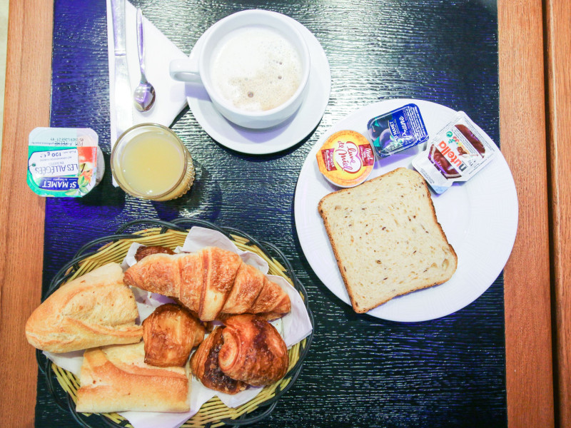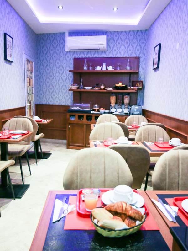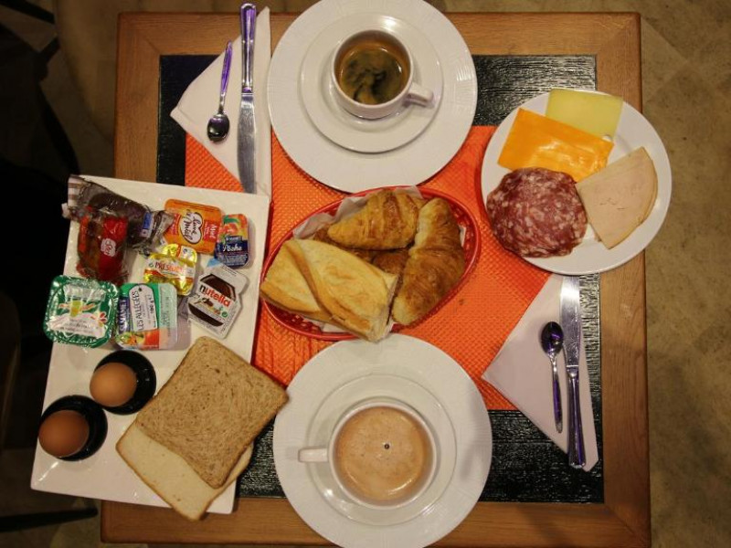 El desayuno bufé no está incluido en el precio de la habitación: 16 euros por persona. Se sirve en la sala de desayunos de 7:00 a 10:30 o en la habitación de 7:00 a 11:00 (suplemento de 6 euros). El abundante y variado desayuno bufé ofrece una amplia selección de productos salados, dulces, calientes y fríos. Podrá componer su comida según sus preferencias, con cereales, bollería, fruta, pasteles y platos calientes como huevos o beicon.