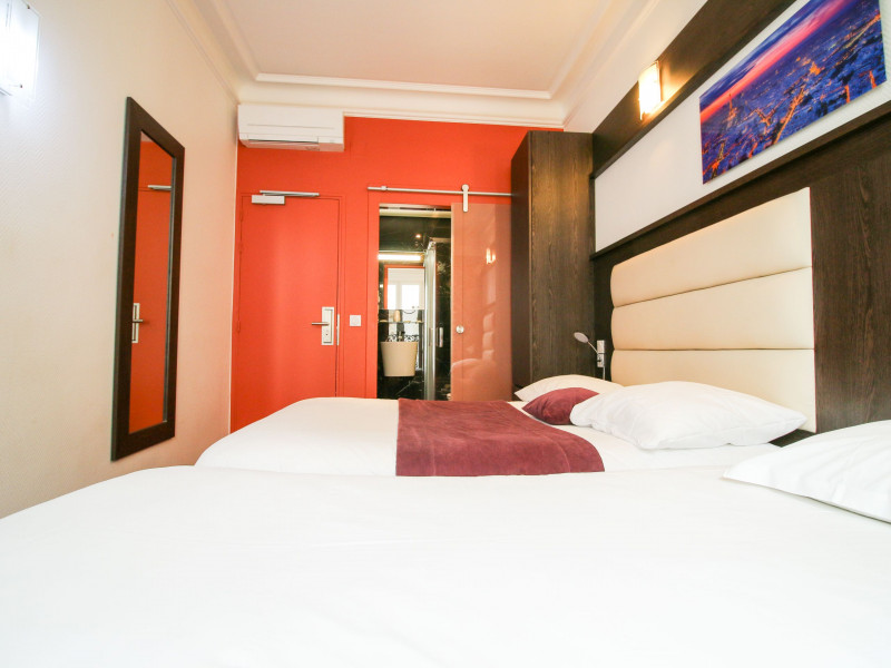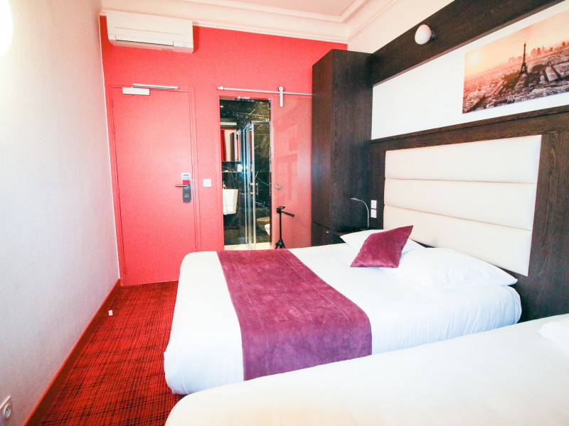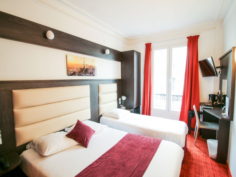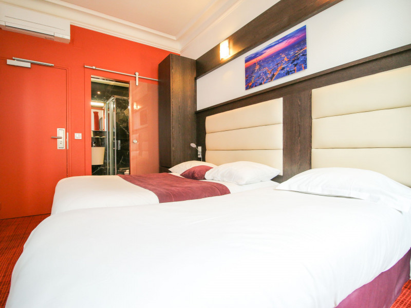 - Habitación triple: 15,60 m² - 1 cama queen size + 1 cama individual o 3 camas individuales - ducha a ras de suelo - vistas a una calle tranquila